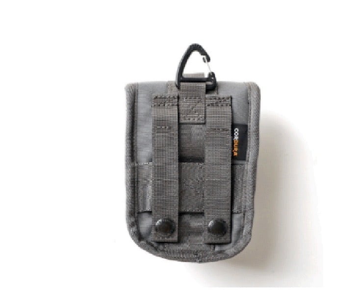 上部のカラビナや背面の縦横のストラップを利用してベルトやベルトループ、カバンのショルダーストラップなどに取り付け出来ます。