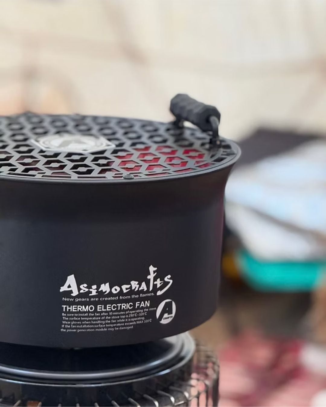 GB PROJECTが2021年より販売しているストーブの熱源を電気に変え駆動するファンをasimocrafts仕様で別注製作。