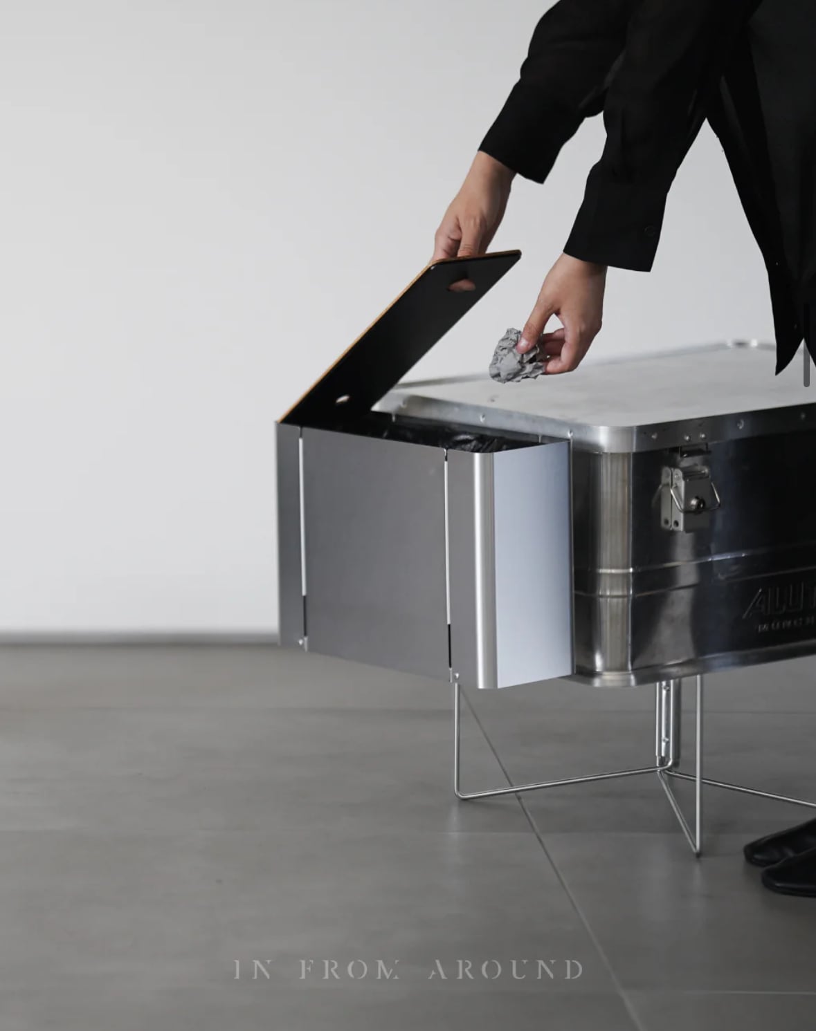 コンテナに同化するコンパクトなゴミ箱