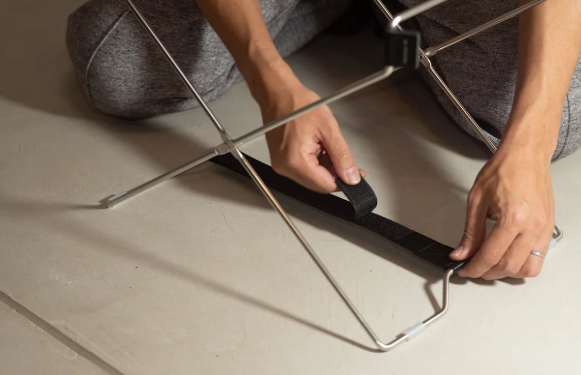 セッティングはワイヤーフレームを広げで凹部をテープで固定すれば完了。