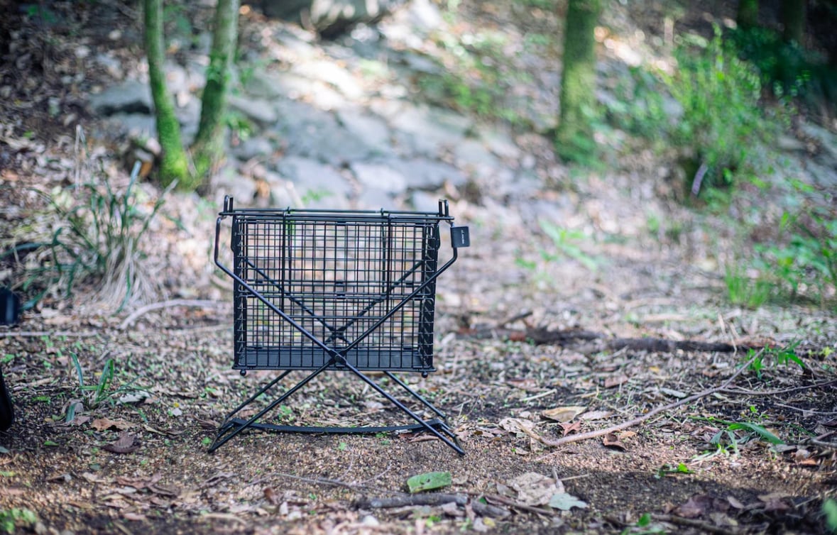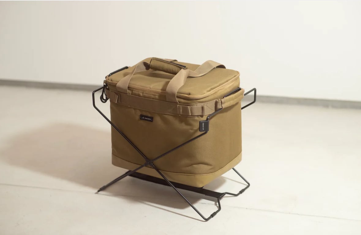 マルチギアボックスM, マルチギアボックスL(別売)の使用はもちろん、ANOBA フォールディングワイヤーバスケットM(別売)のスタンドとしても使用可能。 ※スタンドが若干狭まりますが、使用上問題ありません。