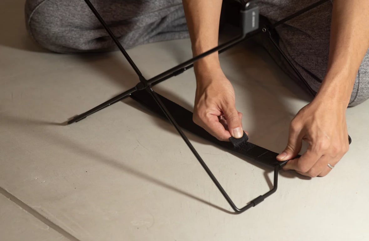 セッティングはワイヤーフレームを広げで凹部をテープで固定すれば完了。