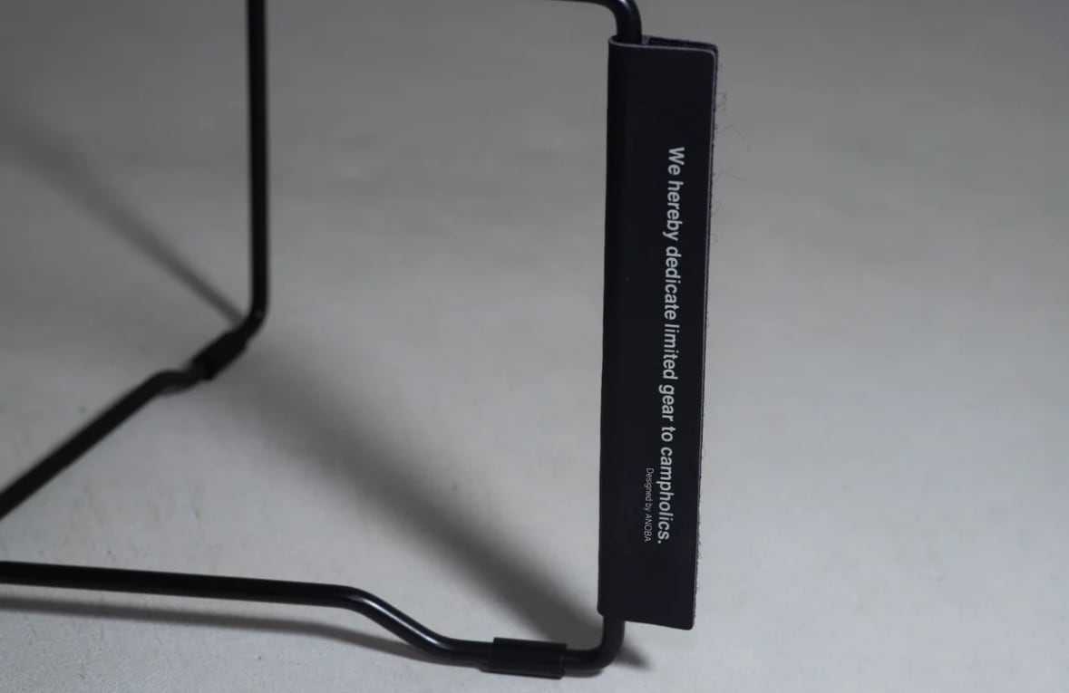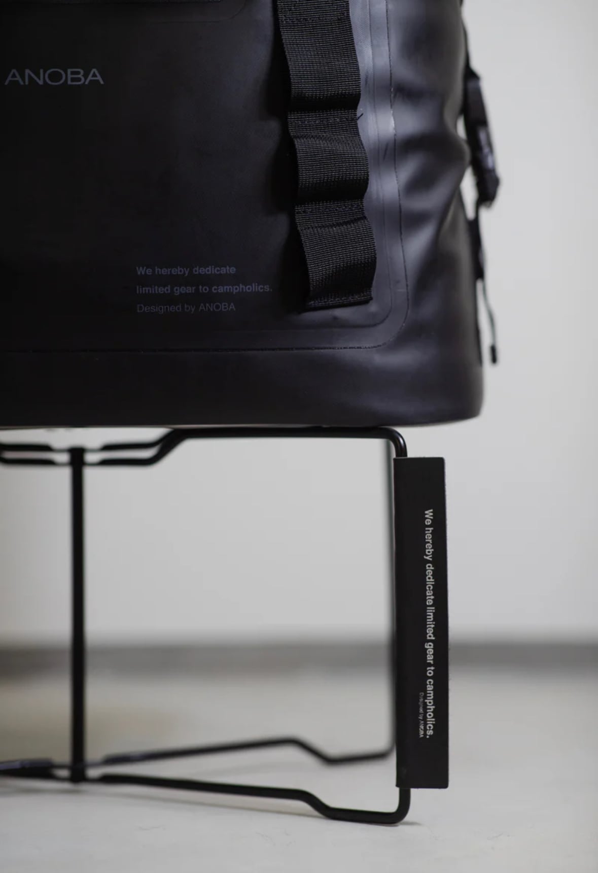 付属のアノバのロゴをあしらったロゴアタッチメントは、収納時はバンドとして使用可能です。