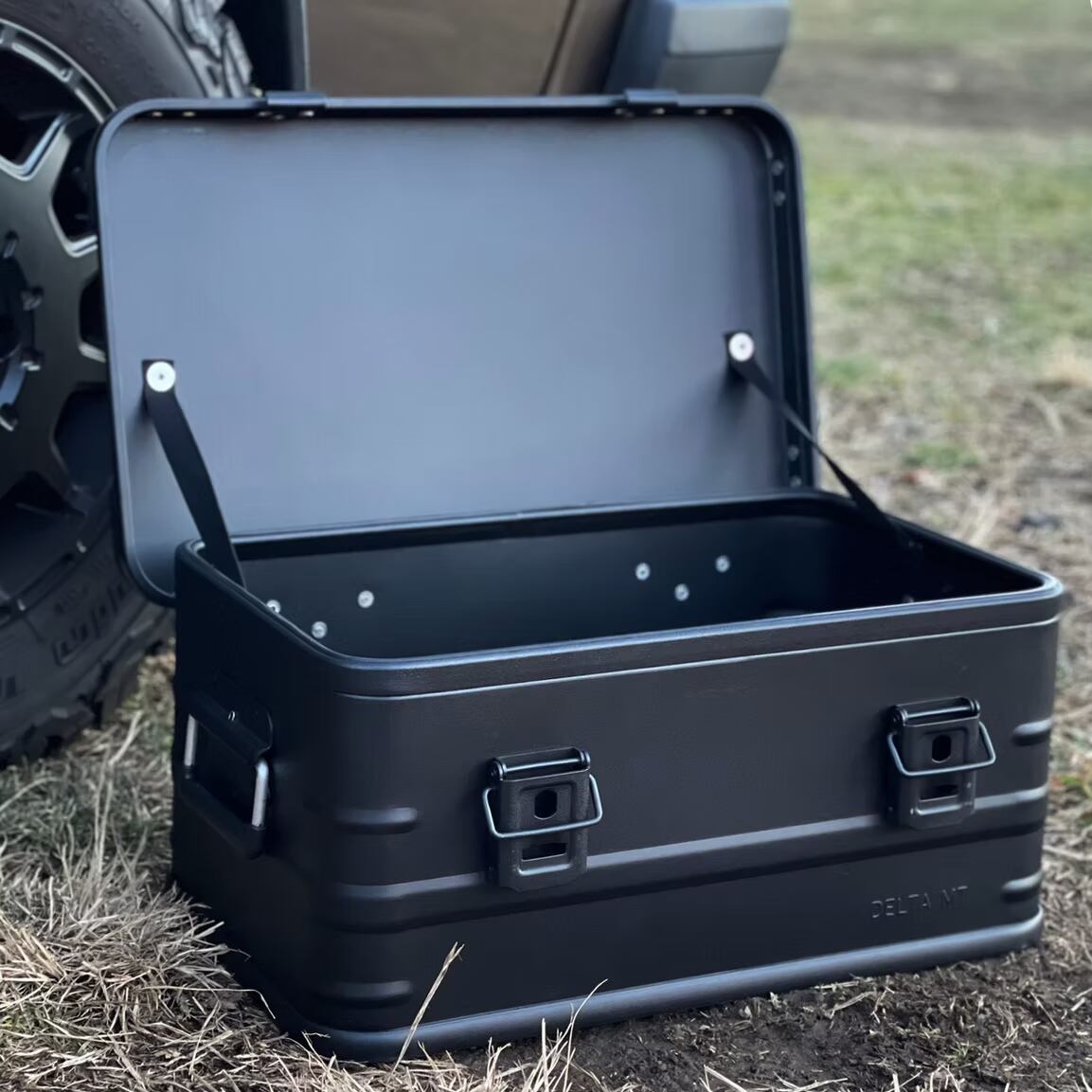 シンプルなデザインでスタッキング可能。防塵性、防腐性、防水性が高いアルミボックスは大切な荷物を守るストレージボックスとしても最適です。