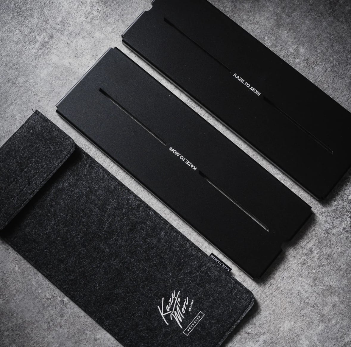 素材はアルミニウム製。軽量で扱いやすく、仕上げはブラックアルマイトのサンドブラスト仕上げです。本製品は2枚組。持ち運びや保管に便利なスリーブケースが付属します。