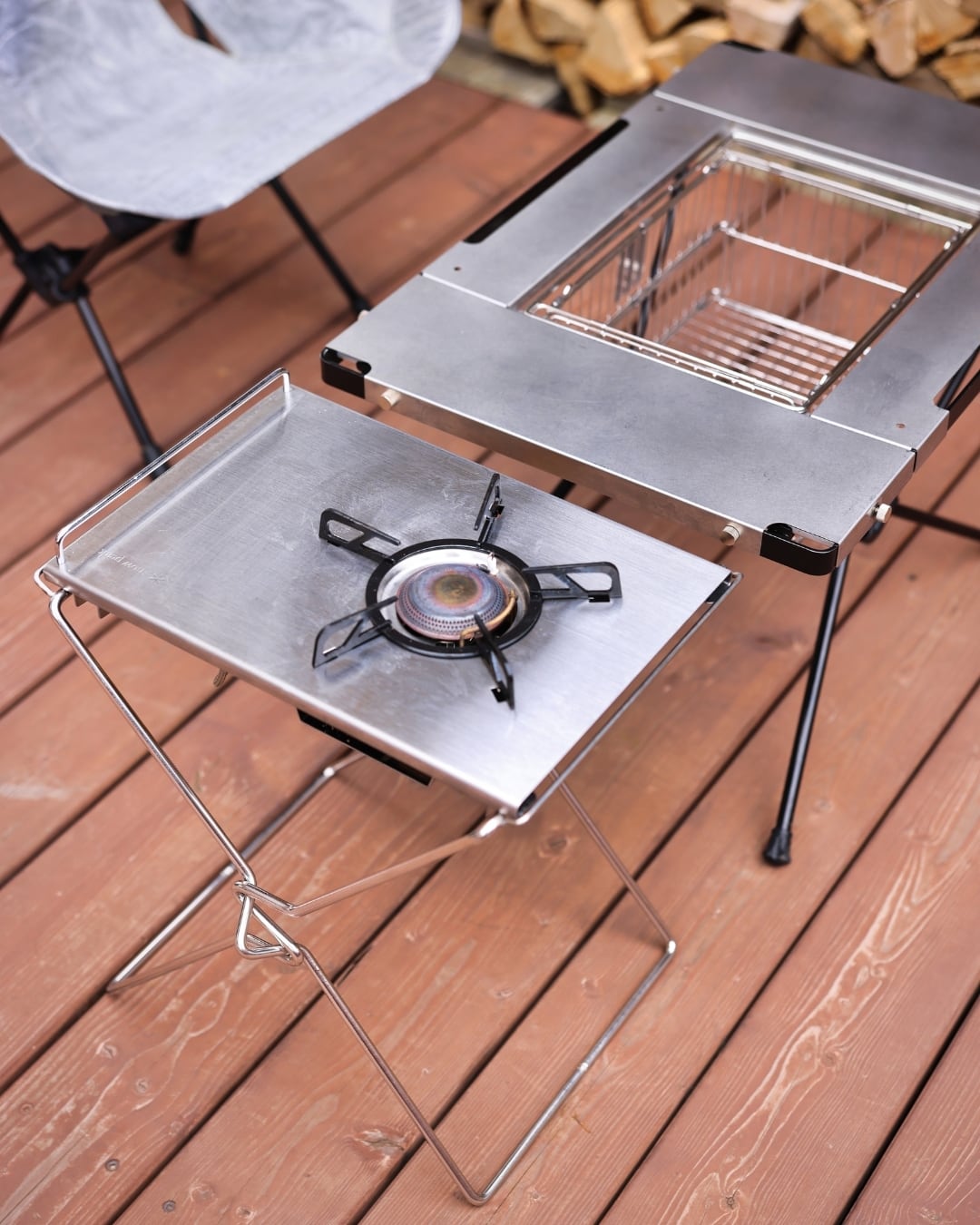 一秒設営の利点はそのままに、今までフラットバーナーなどを使用するときに気になっていたズレなどが起きにくい形となりました。(画像参照)