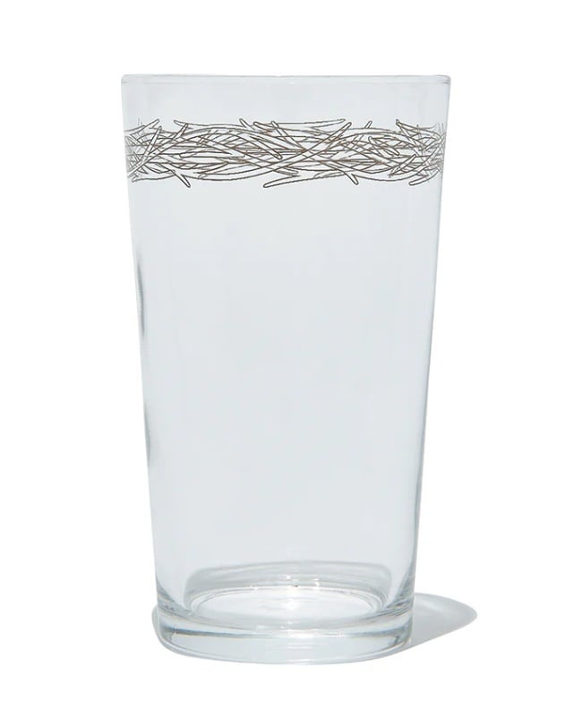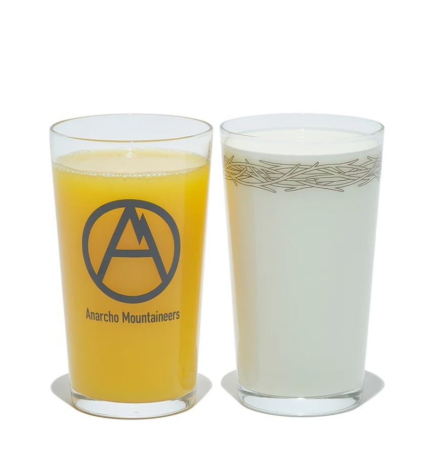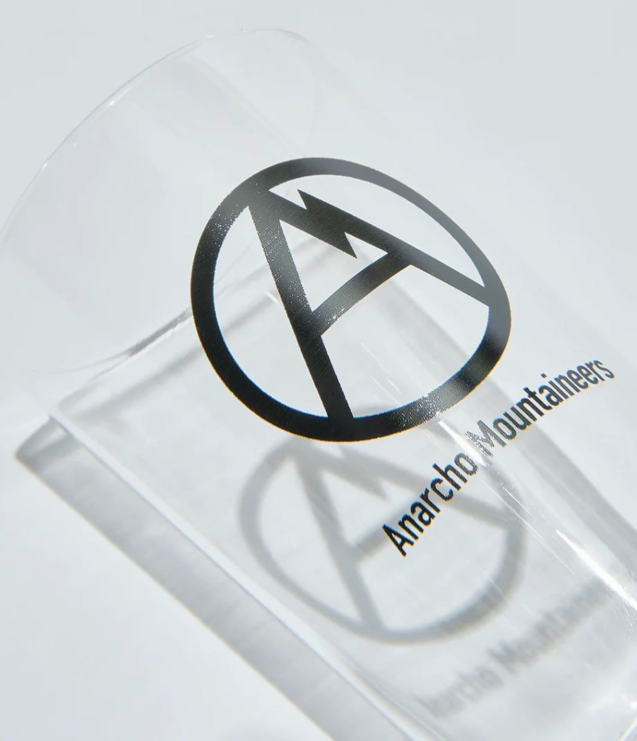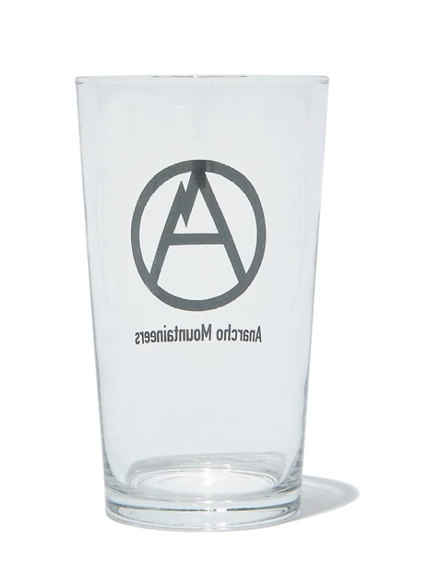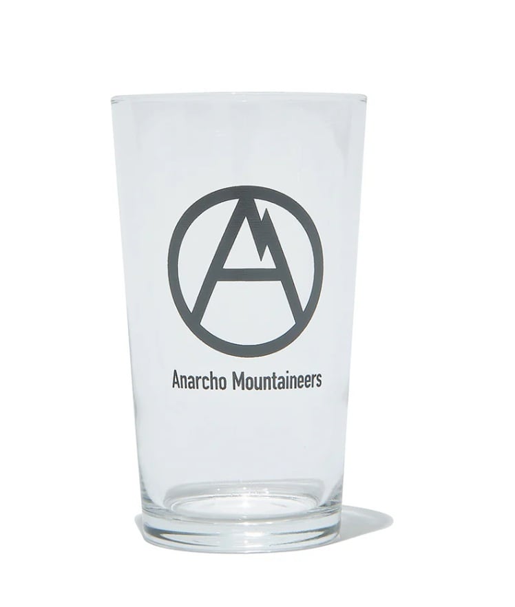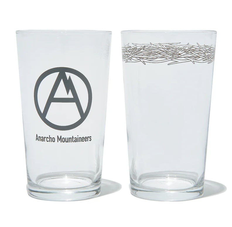 山ではステンレス食器(あるいは樹脂製)のAnarcho Mountaineersも、ご帰宅後や休日の至福の一杯にはプリント入りのグラスをご提案。