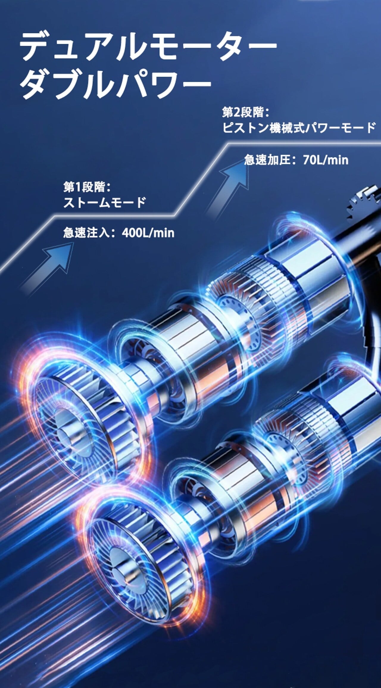 ✅ デュアルモーター搭載:強力なパワーで効率よく空気を注入。