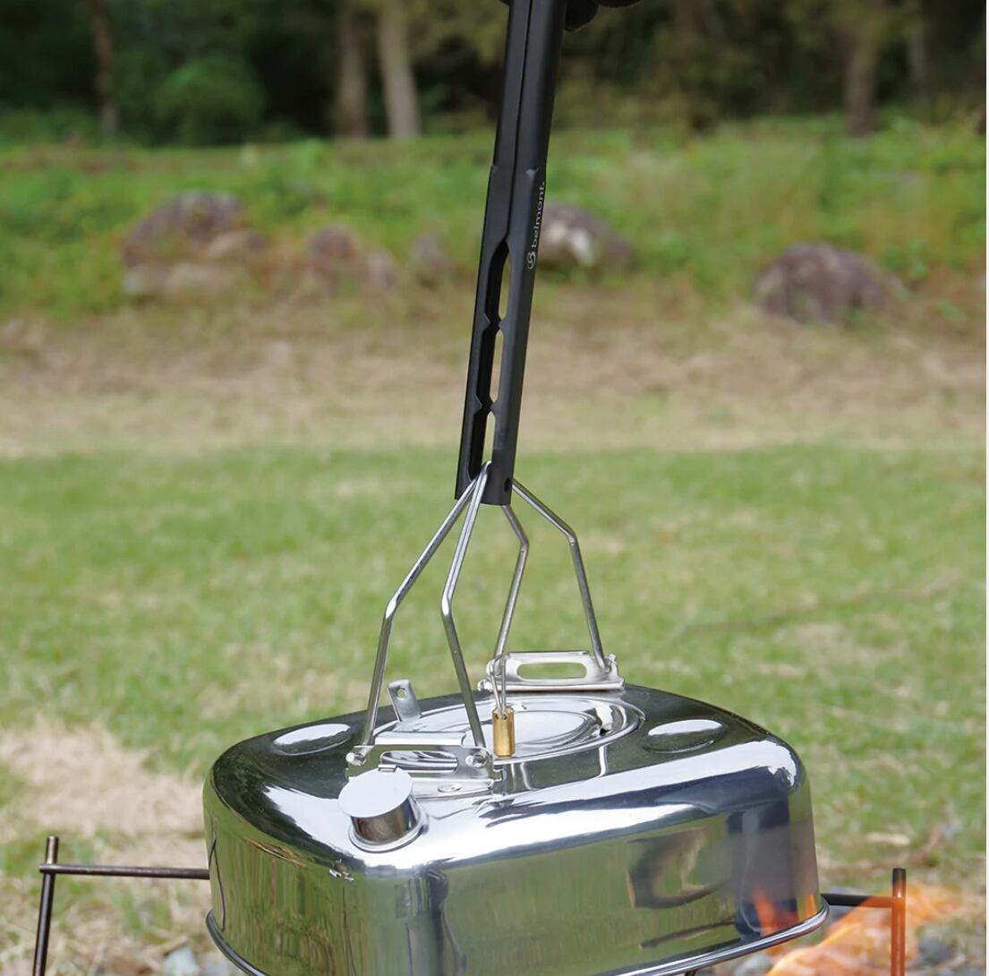 アルミニウムをコの字に成形しているため強度があり大きな薪にも対応、可動部にはバネ材を使用しているのでヘタれることなく長く使えます。先端をズラして使うと細い枝もつかめる設計。超軽量70gなので荷物を減らしたいソロキャンパーやツーリングキャンプに最適です。